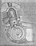1. Arbeitsverfahren Beim klassischen Zweitaktmotor sind die vier Arbeitsgänge Ansaugen-Verdichten-Verbrennen-Ausschieben durch den doppelt wirkenden Kolben auf zwei Hübe, also eine Kurbelwellen-Umdrehung zusammengedrängt. Die Kolbenunterseite erzeugt beim Aufwärtsgang in dem allseits geschlossenen Kurbelgehäuse einen Unterdruck und saugt das Gasgemisch durch den von der Kolbenunterkante gesteuerten Ansaugschlitz in das Gehäuse. (Bild 1) | ||||||||||||||||||||||||||||||||||||||||||||||||||||||||||||||||||||||||